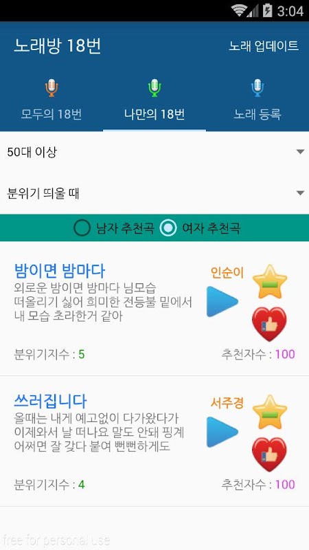 চিন্তা আর কারাওকে না !!!! আপনি একটি গান আপনার মেজাজ মেলে খুঁজছেন না? প্রতি গান / লিঙ্গ / মেজাজ তিনটি বড় আমি ভাল সাজানো আছি.