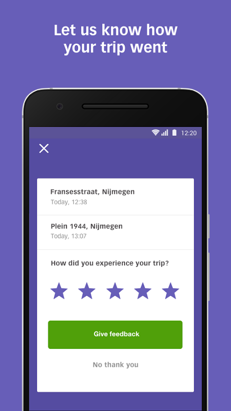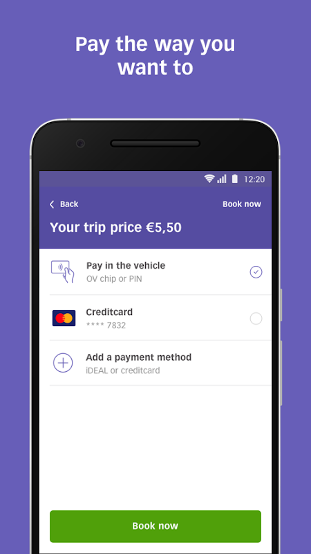আপনি এই নিখরচায় ওভি ফ্লেক্স অ্যাপের মাধ্যমে রিজার্ভেশন করতে পারেন। নাম এবং ইমেল ঠিকানা প্রবেশ করান, আপনার পছন্দসই অঞ্চল চয়ন করুন এবং যান! ওভি ফ্লেক্সের সাহায্যে আপনি একটি সিট বুক করুন, পুরো যানবাহন নয়। এর অর্থ হ'ল আপনার যাত্রার সময় হুমকির সম্মুখীন না হওয়া অবধি অন্যান্য যাত্রীরা চলাচল করে বা পথে নামাবেন এমন সম্ভাবনা রয়েছে।
