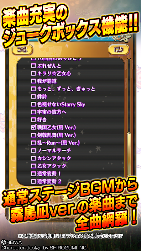 ・ "সাউন্ড প্যাক" ¥ 490: গান নির্বাচন করার জন্য এবং বিগ হিটের সময় গান বাজানোর জন্য "জুকবক্স" ফাংশনটি প্রকাশ করা হয়েছে।