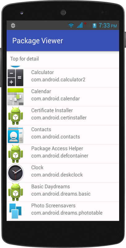 এই অ্যাপ্লিকেশনটি সমস্ত ইনস্টল থাকা অ্যাপ্লিকেশন এবং প্যাকেজ নামের তালিকা প্রদর্শন করে।