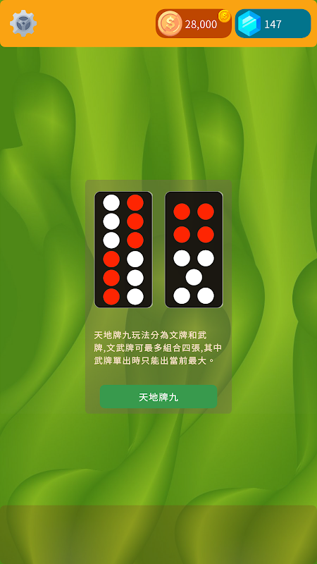 চাইনিজ ডোমিনোদের 30টি কার্ড রয়েছে৷ আপনি আপনার সেরা কার্ডগুলি বের করতে পারবেন বা আপনার কাছে বড় কার্ড না থাকাকালীন একই কাউন্টের কার্ডগুলি ভাঁজ করবেন৷ বিজয়ীর অবশ্যই লুপে 5টি ডোমিনো জিততে হবে, আরও একটি জয়, আপনি দ্বিগুণ স্কোর পাবেন' পাবেন।