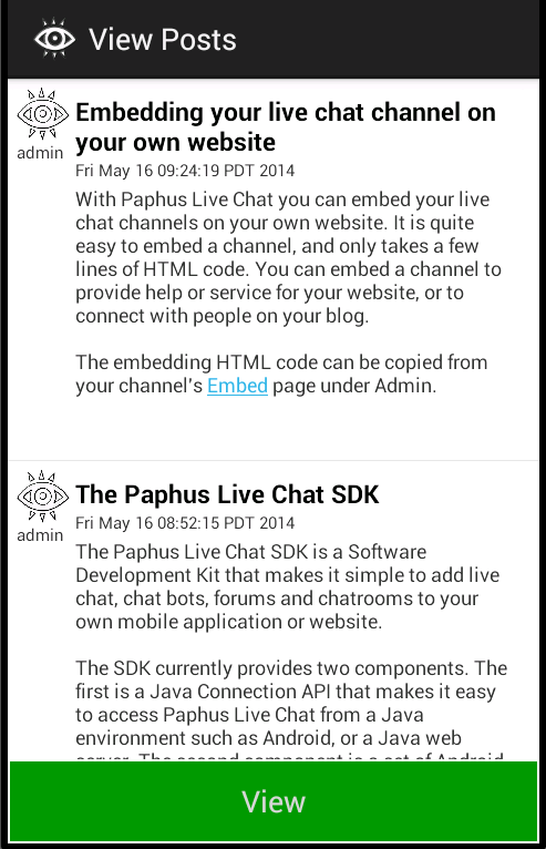 Paphus Live Chat allows you to create your own live chat channels, chat rooms, forums, and chat bots. You can easily embed a live chat channel, chat room, forum, or chat bot on your own website, or in your mobile application.