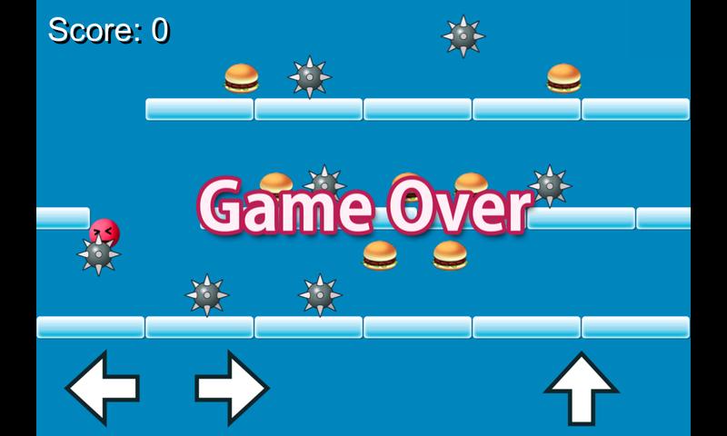- If he falls to the bottom or clashes with spiky balls, the game ends.
