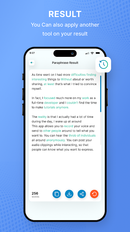 প্যারাফ্রেজিং পদ্ধতি অনুসরণ না করা পর্যন্ত, অ্যাপটি প্রথমে প্রদত্ত বিষয়বস্তুর প্রসঙ্গ পরীক্ষা করে। এই চিত্তাকর্ষক অ্যাপটির ধারণাটি উপলব্ধি করতে মাত্র কয়েক সেকেন্ডের প্রয়োজন এবং খুব সহজেই আউটপুট তৈরি করে।