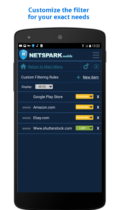 নেটস্পার্ক মোবাইল প্যারেন্টাল কন্ট্রোল অ্যাপ স্মার্টফোন এবং ট্যাবলেটের জন্য সম্পূর্ণ কন্টেন্ট ফিল্টারিং প্রদান করে, এমনকি ইন্টারনেট কানেকশন ছাড়াই, এমনকি যদি বিষয়বস্তু স্থানীয়ভাবে সংরক্ষণ করা হয় বা বাইরের উৎস থেকে (উদাহরণস্বরূপ, ইউএসবি ফ্ল্যাশ ড্রাইভ)। আপনার এবং আপনার পরিবারের মূল্যের সামগ্রীতে অ্যাক্সেস বজায় রেখে আমরা সম্পূর্ণ সুরক্ষা প্রদান করি!