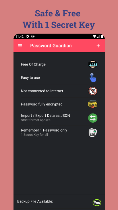 একটি সম্পূর্ণ নিরাপদ এবং এনক্রিপ্টযুক্ত অ্যাপ্লিকেশন যা আপনাকে আপনার পাসওয়ার্ডটি আপনার নাগালের মধ্যে নিরাপদে রাখতে দেয়।