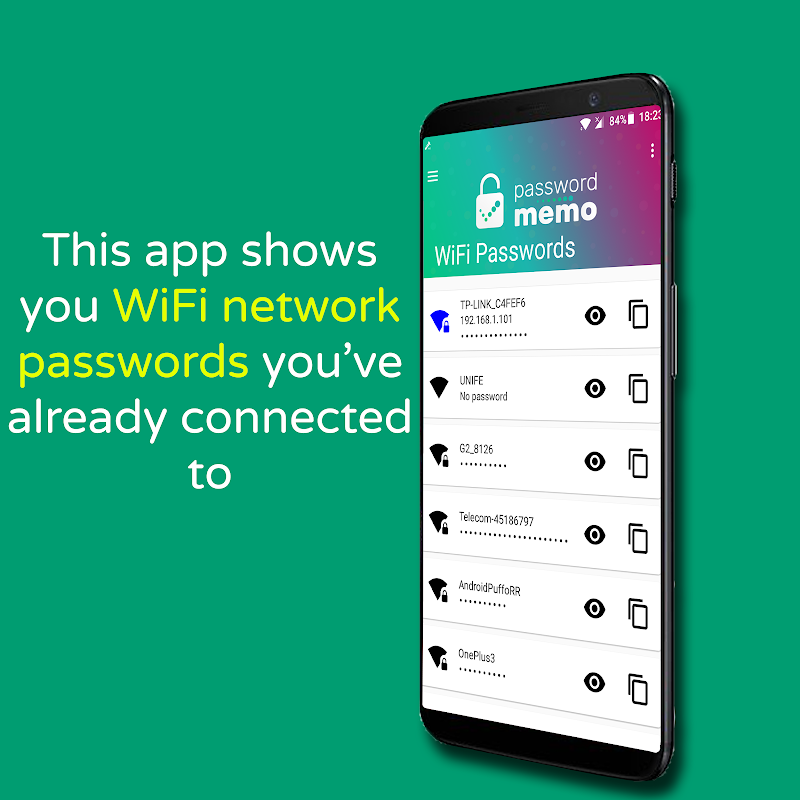 😉 Just read the passwords of the WiFi networks that you have previously connected! This feature is only available to users with ROOT permissions because this application have to read a system file.