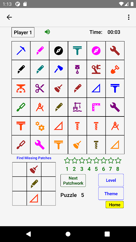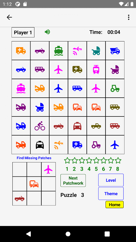 প্যাচওয়ার্ক পাজল হল একটি মজার প্যাটার্ন রিকগনিশন গেম যা প্রারম্ভিক প্রাথমিক বিদ্যালয়ের বাচ্চাদের (5 থেকে 8 বছর বয়সী) প্রি-কে-এর পিতামাতার জন্য ডিজাইন করা হয়েছে। এটি আপনার সন্তানকে ন্যাশনাল আর্লি লার্নিং স্ট্যান্ডার্ডের উপর ভিত্তি করে স্কুলের সাফল্যের জন্য গুরুত্বপূর্ণ একাডেমিক দক্ষতা তৈরি করতে সাহায্য করে। এটি রং, আকার, সংখ্যা, বর্ণমালার অক্ষর এবং ক্রম এবং সাজানোর মতো মৌলিক যুক্তিবিদ্যার জ্ঞানকে উন্নত করে।