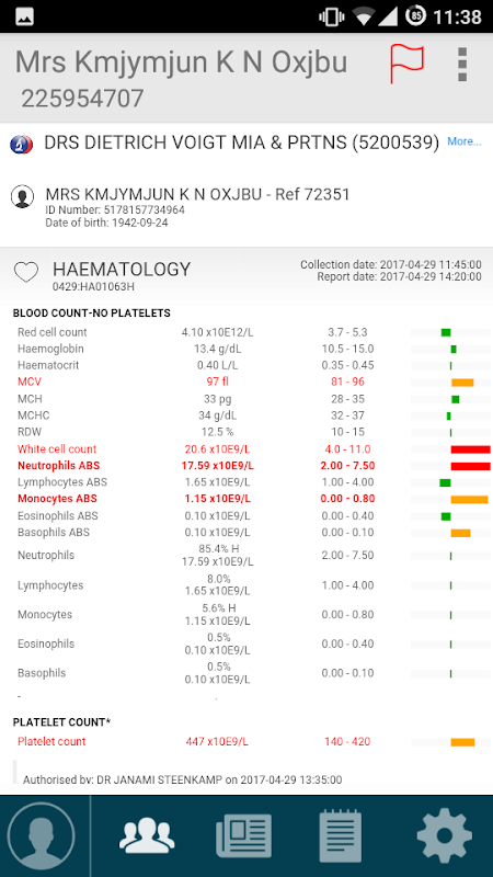 Pathcare প্যাথলজি Version2 অ্যাপ্লিকেশন ফলাফল