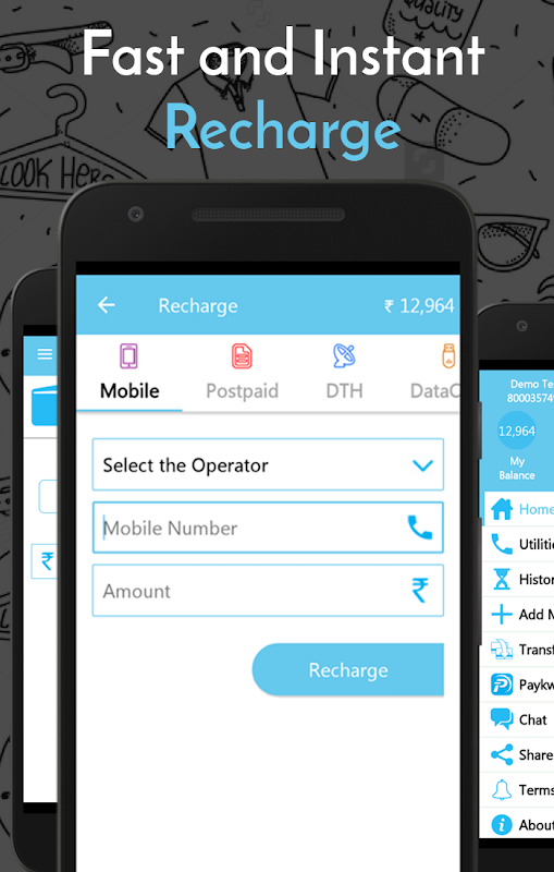 - এয়ারটেল রিচার্জ, VI রিচার্জ, জিও রিচার্জ, বিএসএনএল রিচার্জ এবং অন্যান্য অনলাইন মোবাইল রিচার্জ করুন।