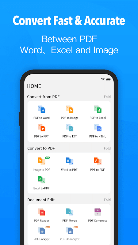 PDF এক ট্যাপ দিয়ে পিডিএফ, ওয়ার্ড, জেপিজি ইত্যাদি রূপান্তর করুন