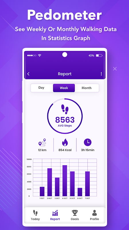 প্রতিবেদনের গ্রাফগুলি এখন পর্যন্ত সর্বাধিক উদ্ভাবনী, সেগুলি আপনার ওয়াকিং ডেটা ট্র্যাক করতে সহায়তা করার জন্য মোবাইল ডিভাইসের জন্য বিশেষভাবে তৈরি করা হয়েছে। আপনি গ্রাফগুলিতে আপনার শেষ 24 ঘন্টা ’, সাপ্তাহিক এবং মাসিক পরিসংখ্যান পরীক্ষা করতে পারেন।