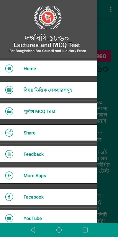 This is the app of Penal Code for the preparation for Bangladesh Bar Council and Judiciary exam. We have included all the lectures and related MCQ test.