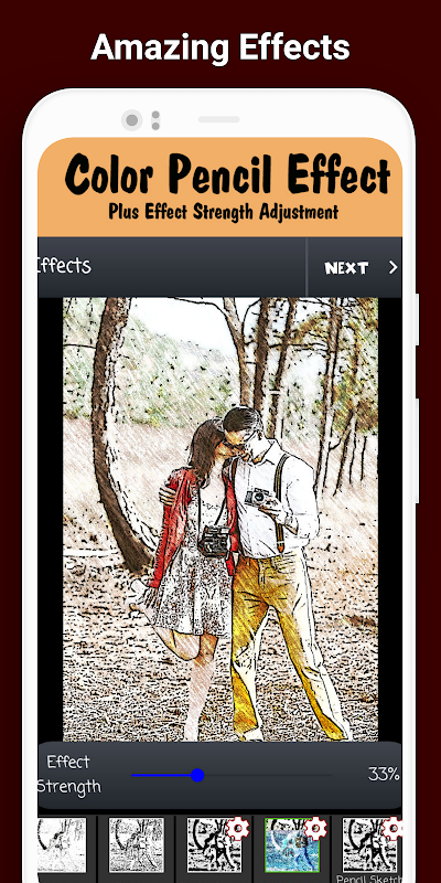 * চিত্রের প্রভাব: কুল স্কেচ ফটো এফেক্টস প্রয়োগ করুন যার মধ্যে রয়েছে: স্কেচ, নরম, গা dark় পেন্সিল, বিশদ, রঙ পেন্সিল, ওভারলে কালো, লাল এবং নীল, কমিক, কমিক স্কেচ এবং আরও অনেক কিছু।