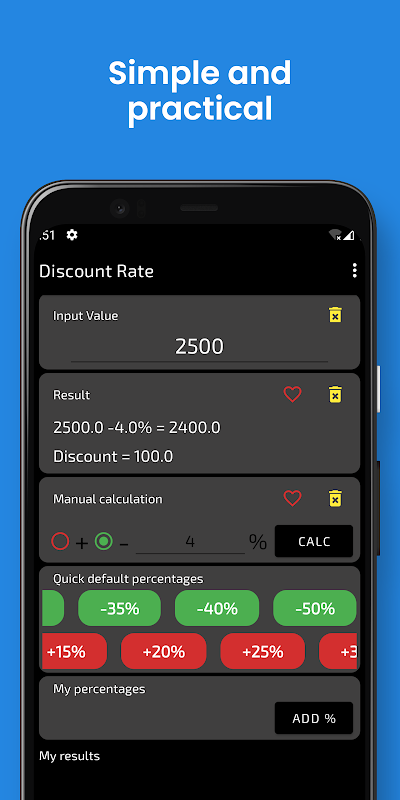 ছাড়ের হারের সাথে আপনি যে শতাংশটি চান তা দ্রুত গণনা করতে পারেন। বৃদ্ধি বা ছাড়