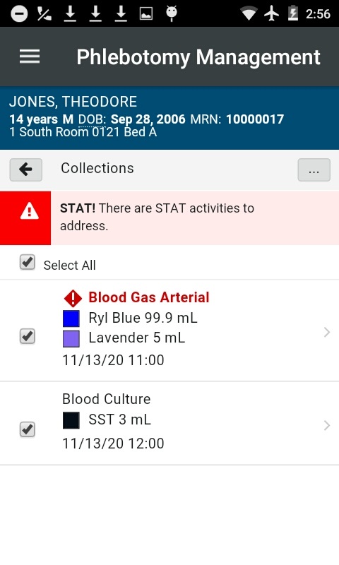 ফ্লেবোটোমি ম্যানেজমেন্ট ক্লিনিকে একাধিক রোগী ওয়ার্কলিস্ট ব্যবহার করে নমুনাগুলির জন্য পরিকল্পনা এবং সংগ্রহ করার ক্ষমতা দেয়। মাল্টি-রোগী ওয়ার্কলিস্ট নির্বাচিত রোগীদের এবং অবস্থানের জন্য নমুনা সংগ্রহ সম্পর্কিত প্রাসঙ্গিক ক্লিনিকাল তথ্যের একটি উপসেট প্রদর্শন করে।