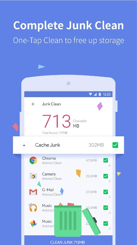 .Just clean app caches and junk files, boost your phone with ONE click!