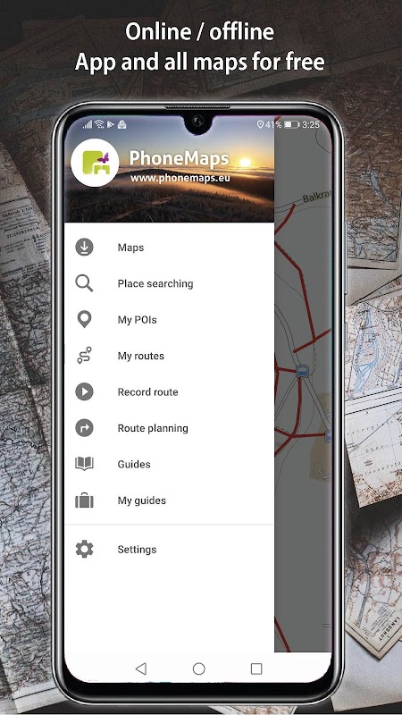 মোবাইল ফোন অ্যাপ ফোনম্যাপ প্রায় পুরো ইউরোপের চিহ্নিত হাইকিং এবং সাইক্লিং রুটের সম্পূর্ণ নেটওয়ার্ক সহ বিনামূল্যে জুমযোগ্য হাইকিং এবং সাইক্লিং ম্যাপ অফার করে। অ্যাপে আপনি আপনার ছুটির পরিকল্পনা করতে পারেন, কার্যকলাপের সময় ভূখণ্ডে অবস্থান করতে পারেন এবং আপনার ট্র্যাক এবং অভিজ্ঞতাগুলি রেকর্ড করতে পারেন এবং তারপরে আপনার বন্ধুদের সাথে শেয়ার করতে পারেন। চিহ্নিত হাইকিং/সাইক্লিং রুট সহ হাইকিং বা সাইক্লিং বিষয়বস্তু আপনি আপনার ফোনে সাধারণ মানচিত্র অ্যাপ্লিকেশনগুলিতে পাবেন না, আপনাকে বইয়ের দোকানে গিয়ে কাগজের মানচিত্র কিনতে হবে না।