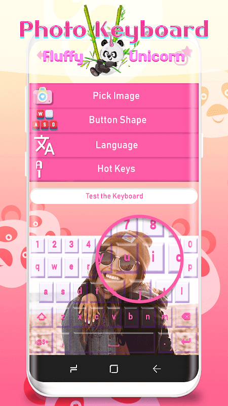 Are you looking for an amazing ''photo keyboard with emojis'' for your smartphone with ''unicorn pictures'' for decoration? If you want to ''change keyboard'' and also to pick your own ''keyboard wallpaper'' from the gallery, we have something for you! Refresh your smartphone with one of the best ''photo keyboard custom themes'' and ''keyboard images''! Decorate your ''panda keypad'' in beautiful pictures from your gallery and start sending love messages with brand new keyboard fonts and ''free emojis for texting''! In this ''panda bear keyboard'' and unicorn app, you can be whatever you want and show it to everyone without thinking too much! If you have to change keyboard design and if you enjoy in ''my pic keyboard'' with amazing details, this ''emoji keyboard app'' is created just for you! Our picture keyboard with emojis is waiting for you to install it and use it!