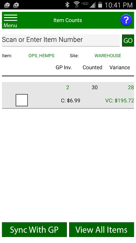 এই অ্যাপ্লিকেশনটি আপনাকে দক্ষতার সাথে আপনার তালিকা গণনা করতে এবং মাইক্রোসফ্ট ডায়নামিক্স জিপির সাথে সিঙ্ক করতে দেয়। নিম্নলিখিত বৈশিষ্ট্য উপলব্ধ।