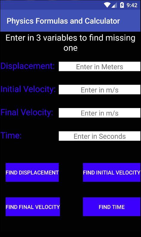 The ultimate tool for calculating and solving for variables. This app consists of over 20 physics formulas. With each formula, the app can solve for the value of any variable, given the values of the other variables.
