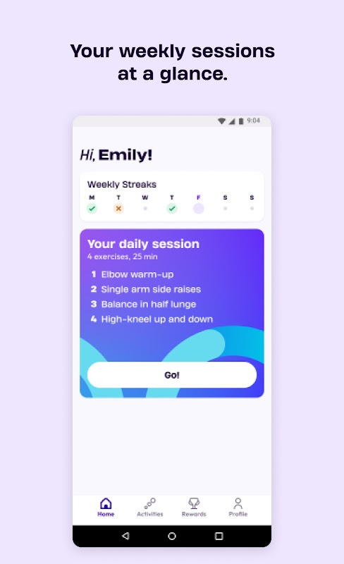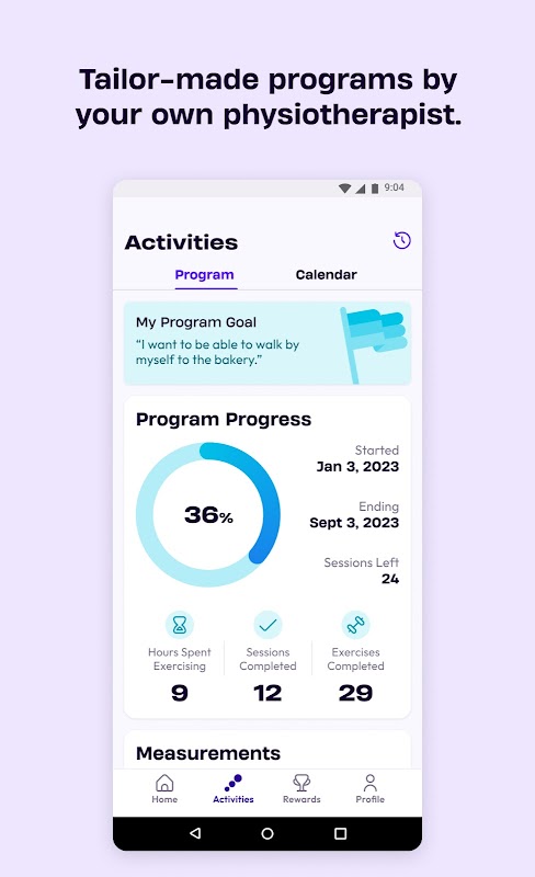 আপনার ফিজিওথেরাপিস্টের সাথে অগ্রগতি ভাগ করে নেওয়ার জন্য কার্যকলাপ ট্র্যাকিং এবং প্রয়োজনে কোনো সমন্বয় করুন।