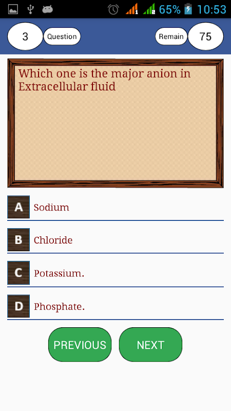 শারীরবৃত্ত এমসিকিউ পরীক্ষার অনুশীলনের জন্য অ্যান্ড্রয়েড অ্যাপ্লিকেশন। এটা খুব ব্যবহারকারী বন্ধুত্বপূর্ণ অ্যাপ্লিকেশন। এটা 8 নিম্নলিখিত বিষয়গুলি এর এমসিকিউ ধারণ করে।