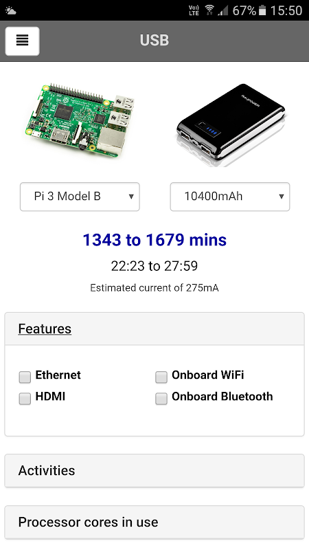 যখন উপলব্ধ থাকে আপনি একই পাওয়ার ব্যাংক থেকে অফিশিয়াল পাই স্ক্রিনটি পাওয়ার করতে পারেন যাতে এটি "বৈশিষ্ট্যগুলি" এ তালিকাভুক্ত থাকে যাতে আপনি সেই হুক আপের সাথে একটি আনুমানিক সময় গণনা করতে পারেন। ইন্টারফেসটিকে যথাসম্ভব সহজ রাখার জন্য এটি কেবলমাত্র পাই আনুষাঙ্গিক যা আমি বিশেষভাবে অন্তর্ভুক্ত করেছি তবে ওয়াইল্ডকার্ড বিকল্পগুলিতে আপনি একই সময়ে অন্য যে কোনও জিনিস ব্যবহার করতে চান তা আবরণ করা উচিত।