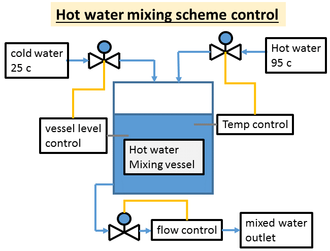 গরম ও ঠান্ডা জলের পাত্র মিশুক এর সিমুলেশন, এটা 3 P.I.D নিয়ন্ত্রণ ভালভ যা নিয়ন্ত্রণ করে থাকে: