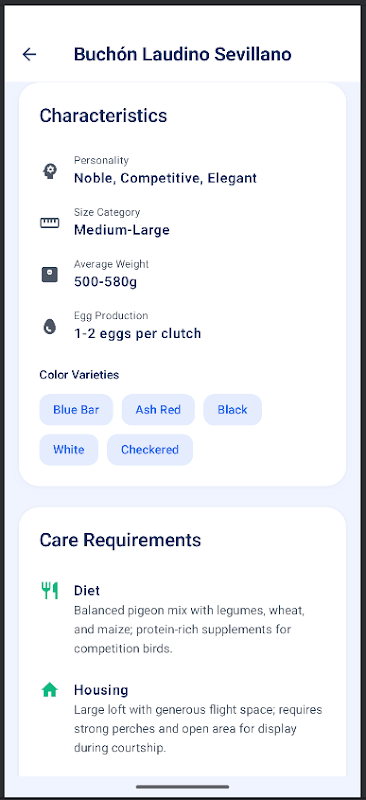 🏆 প্রজননকারী, শৌখিন এবং উত্সাহীদের জন্য: আপনি একজন শিক্ষানবিস বা পেশাদার প্রজননকারী হোন না কেন, এই অ্যাপটি প্রতিটি কবুতরের জাত এবং কবুতরের প্রকারের জন্য চূড়ান্ত রেফারেন্স প্রদান করে।