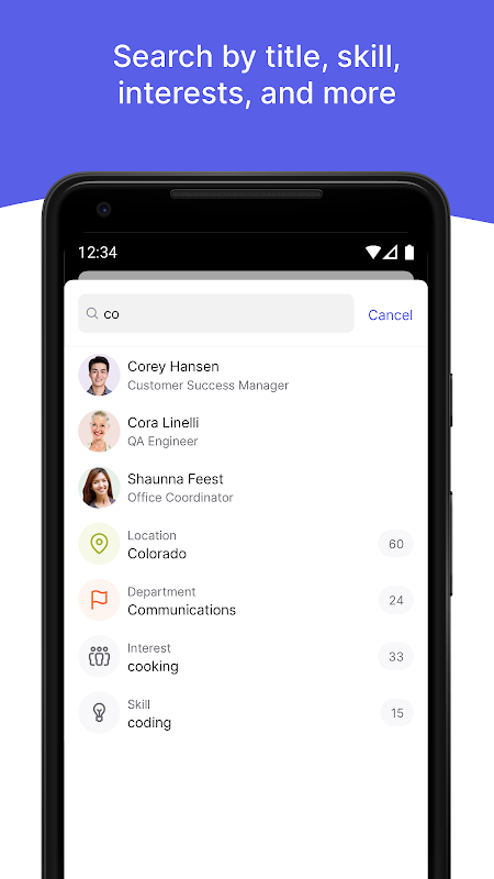 - ফটো, যোগাযোগের তথ্য, আগ্রহ এবং আরও অনেক কিছু দিয়ে আপনার সহকর্মীদের জানুন