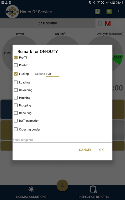 -যখন ট্রাকটি 5 মিনিট বা তার বেশি সময়ের জন্য স্থির থাকে, তখন এটি ডিফল্ট অন-ডিউটিতে ড্রাইভিং না করে এবং ড্রাইভারকে অবশ্যই সঠিক অবস্থানে প্রবেশ করতে হবে