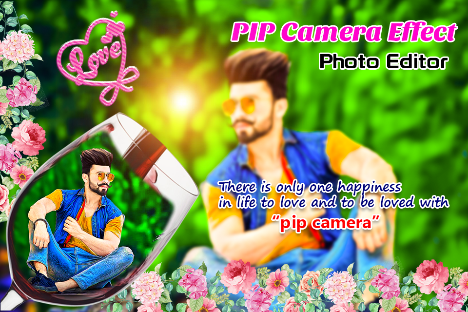 PIP Camera Photo Editor allows you to maker your photo in heart, glass, love, hand, mockup phone, board and more.