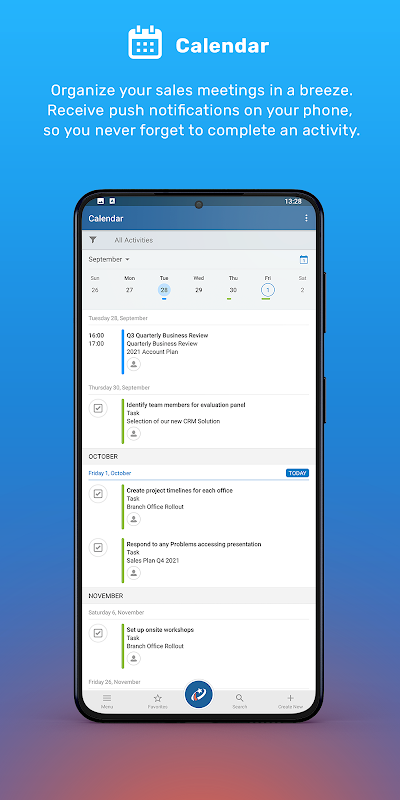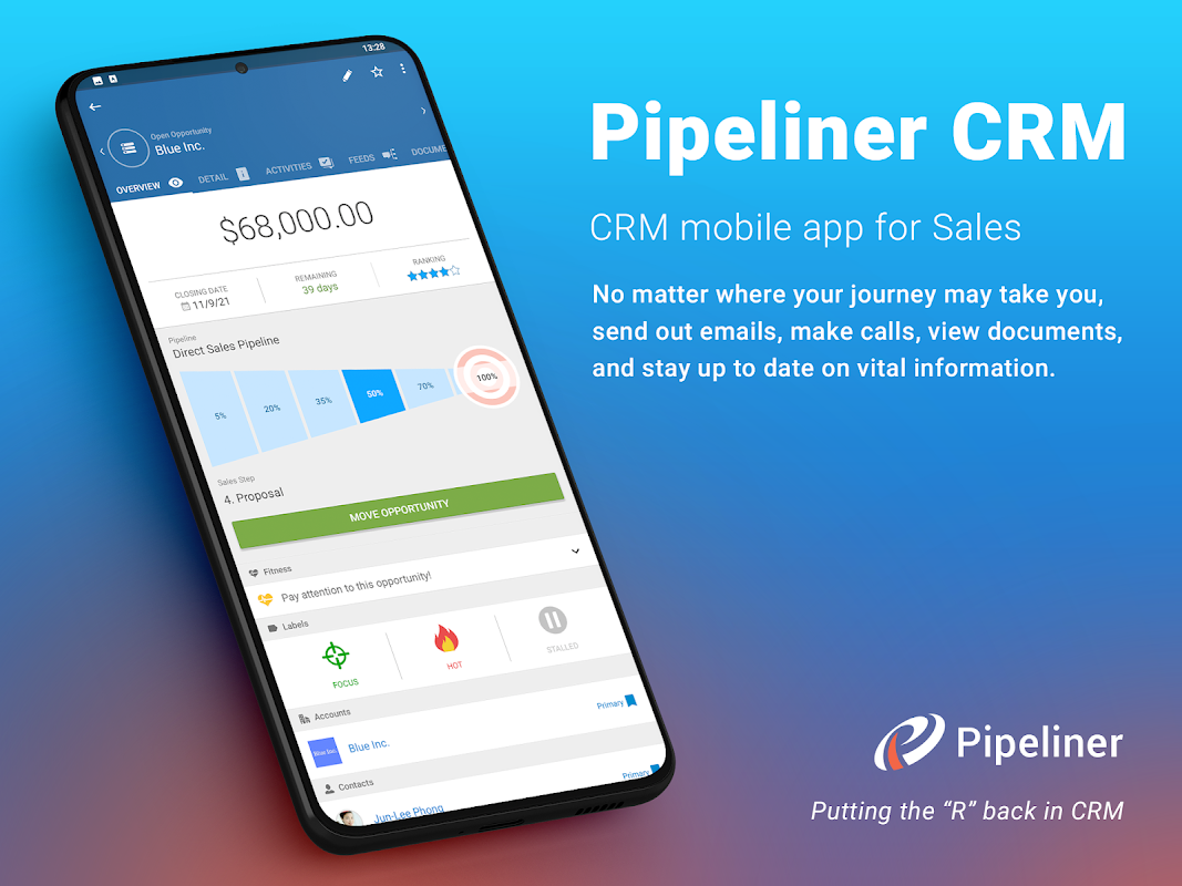 Pipeliner সিআরএম মোবাইল অ্যাপটি আপনার Android ডিভাইসগুলির সাথে পুরোপুরি কাজ করার জন্য অপ্টিমাইজ করা হয়েছে যাতে আপনি যে কোনও সময়ে, আপনার বিক্রয় ডেটা অ্যাক্সেস করতে পারেন।