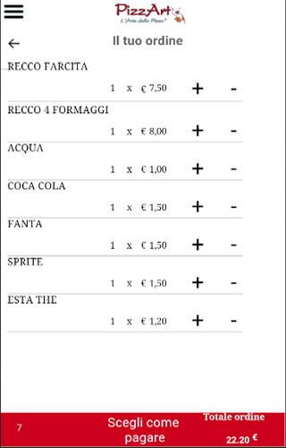 Con l'app PizzArt hai sempre accesso completo al tuo carrello alla cronologia degli ordini.