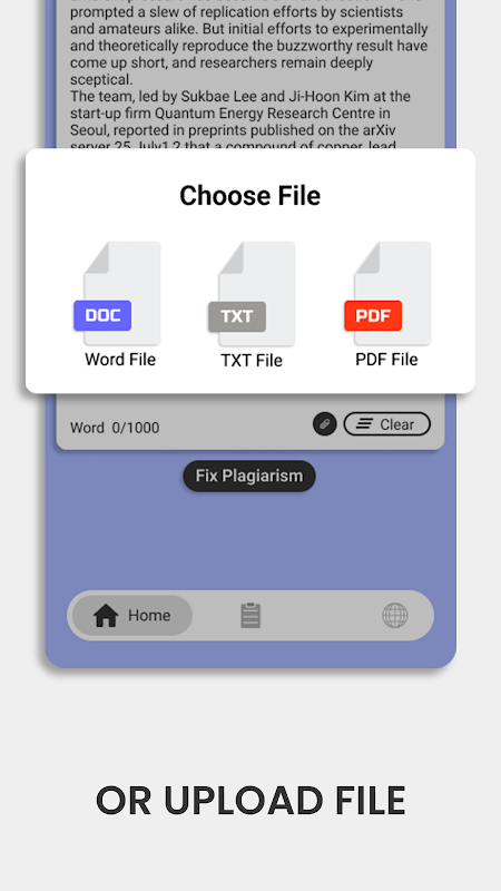 এই চৌর্যবৃত্তি ফিক্সার অ্যাপটি ব্যবহার করা খুবই সহজ, আপনাকে শুধুমাত্র পাঠ্য ক্ষেত্রে বিষয়বস্তু রাখতে হবে, মোডটি বেছে নিতে হবে এবং তারপর ফিক্স বোতামে ক্লিক করতে হবে এবং বিষয়বস্তু থেকে বিষয়বস্তু সরানো হবে। উপরন্তু, আপনি পিডিএফ, শব্দ এবং পাঠ্য ফাইল থেকে বিষয়বস্তু বের করতে পারেন। কেবল মোবাইল ডিভাইস থেকে ফাইলটি নির্বাচন করুন এবং অ্যাপটি স্বয়ংক্রিয়ভাবে বিষয়বস্তুটি বের করবে এবং পাঠ্য ক্ষেত্রে পেস্ট করবে।