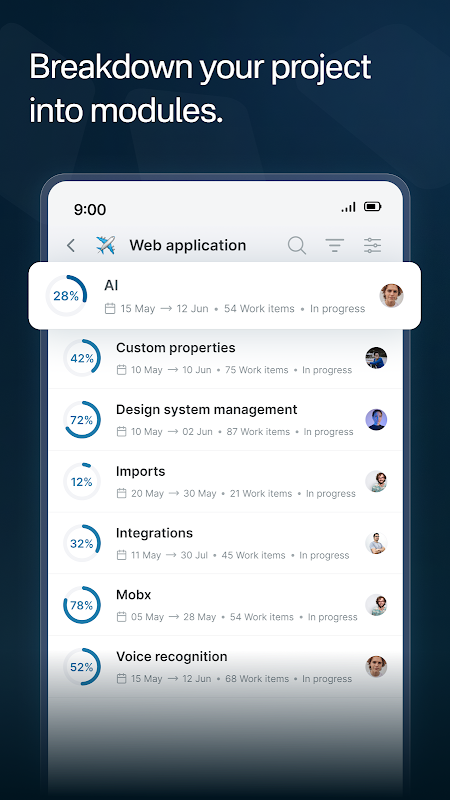 • ওয়েবে স্যুইচ না করেই প্রকল্পের চক্র এবং মডিউলের অগ্রগতি ট্র্যাক করুন।