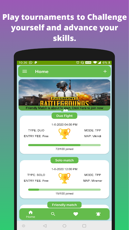 Play360 কোনও বিজ্ঞাপন ছাড়াই বিনামূল্যে অ্যাপ। এটি টুর্নামেন্ট পরিচালনার জন্য একটি প্ল্যাটফর্ম। এখানে আপনি একটি টুর্নামেন্টে যোগ দিতে, অন্যান্য খেলোয়াড়দের সাথে চ্যাট করতে, ম্যাচ শুরুর আগে বিজ্ঞপ্তি পেতে এবং নতুন বন্ধু তৈরি করতে পারেন।