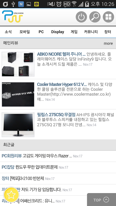 하드웨어, 미들웨어, 소프트웨어, 게임, 마우스, 패드, 그래픽카드, CPU, 리뷰, 모바일, 디스플레이, 스폰서, 커뮤니티, 장터 등