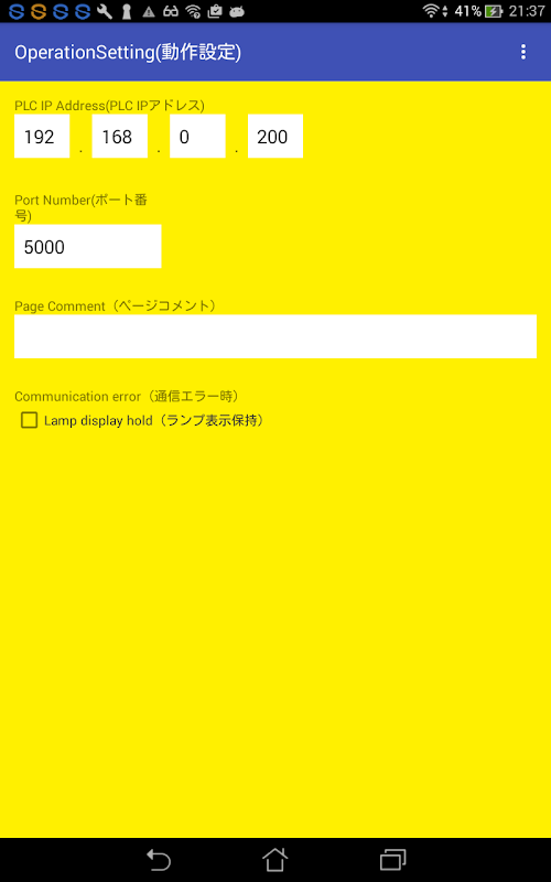 ・ Android端末からWifi経由で、PLCのデバイスのON/OFF操作とON/OFF状態モニタをラダーレスで行うアプリケーションです。