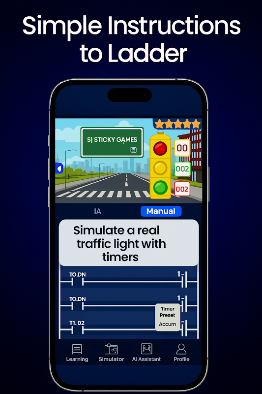 সবচেয়ে সম্পূর্ণ PLC সিমুলেটর অ্যাপ ব্যবহার করে Siemens এবং Rockwell এর সাথে PLC প্রোগ্রামিং শিখুন। PLC AI রিয়েল-টাইম সিমুলেশন, ল্যাডার লজিক প্রশিক্ষণ এবং সার্টিফিকেশন প্রদান করে—সবকিছুই হার্ডওয়্যার ছাড়াই!