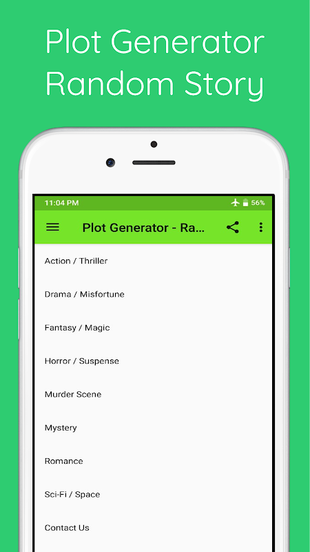 ফ্রি প্লট জেনারেটর - র্যান্ডম স্টোরি অ্যাপটি সম্পূর্ণ বিশদ প্লট তৈরি করতে পারে না; এটি কেবল লেখককে ধারণাগুলি নিয়ে আসতে দেয়।