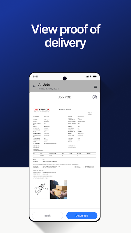 রিয়েল-টাইমে ড্রাইভারদের ট্র্যাক করুন, কাজ পরিচালনা করুন এবং ভ্রমণের সময় ePOD দেখুন।