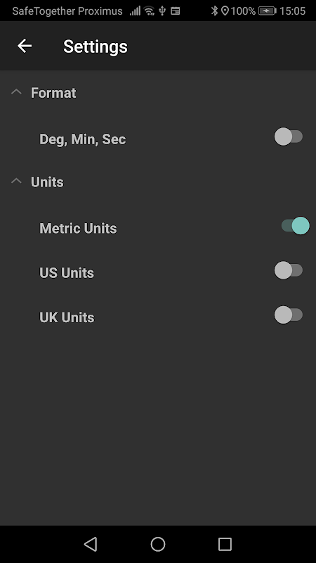 অ্যাপটি দশমিক বা ডিগ্রি, মিনিট এবং সেকেন্ডে জিপিএস অবস্থান প্রদর্শন করতে পারে।