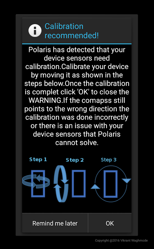** পোলারিস আবেদন একটি চৌম্বক সেন্সর (ম্যাগনেটোমিটার) প্রয়োজন। এই অ্যাপ্লিকেশন কাজ না করে তাহলে, দয়া করে আপনার উল্লেখ চেক করুন বা চেষ্টা এবং ডিভাইস ক্যালিব্রেট করুন।