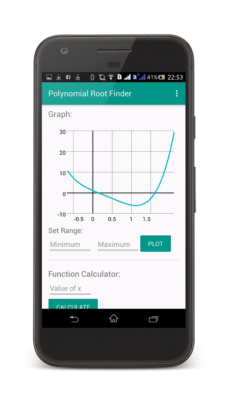 যেমন কোন ডিগ্রী (অর্ডার) বহুপদী মূল নিরূপণ করতে পারেন এটা Play Store এ বিদ্যমান অ্যাপ্লিকেশানগুলিকে ওপর এক উল্লেখযোগ্য উন্নতি হয়।