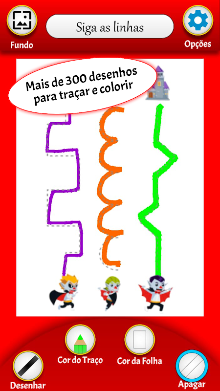 এই কানেক্ট-দ্য-ডটস গেমটিতে, মজা হল অক্ষর, সংখ্যা, জ্যামিতিক আকার এবং প্রাণীর ট্রেসিং এবং রঙ করা। পন্টিনহোসের 300 টিরও বেশি অঙ্কন আটটি বিভাগে বিতরণ করা হয়েছে যাতে আপনি বাড়িতে বা স্কুলে আপনার বাচ্চাদের সাথে রঙ করতে পারেন।