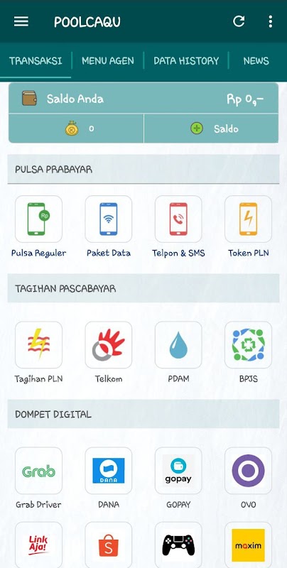 POOLCAQU অ্যাপটি একটি মোবাইল ফোন ক্রেডিট, ডেটা প্যাকেজ এবং PPOB (পেমেন্ট এবং পেমেন্ট) অ্যাপ।