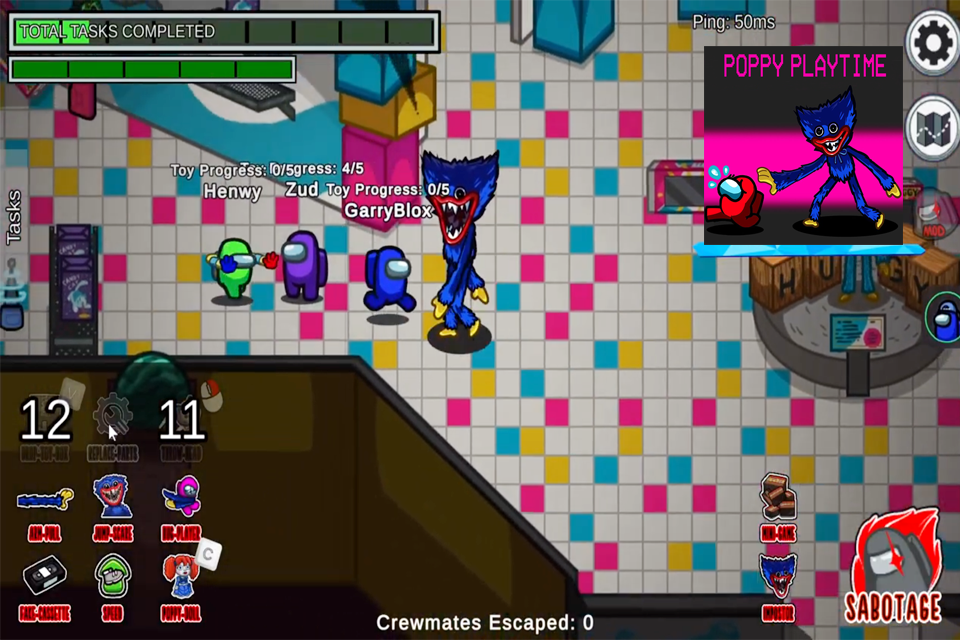 Join this huggy wuggy adventure now and Poppy Playtime Mod in Among Us.