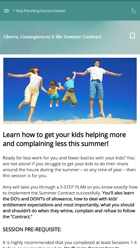 7-ধাপে প্যারেন্টিং সাকসেস সিস্টেম অনলাইন কোর্সে ডুব দিন প্যারেন্টিং-ইন-ইওর-পকেট ® মোবাইল অ্যাপ আজ এবং আপনার পরিবারে উল্লেখযোগ্য পরিবর্তনগুলি দেখতে শুরু করুন — কম চাপ, কম মারামারি, আর কোনো দ্বন্দ্ব বা কথাবার্তা নয়। পরিবর্তে, আপনার বাচ্চাদের সাথে আরও মজা এবং সংযোগের সময় উপভোগ করুন। তারা আরও সুখী, আরও দায়িত্বশীল এবং ভাল আচরণ করবে। আপনি প্রতি রাতে আপনার বাচ্চাদের চিৎকার করার জন্য শোক এবং অপরাধবোধে পূর্ণ হবেন না। পরিবর্তে, আপনি সন্তুষ্টির সাথে হাসতে সক্ষম হবেন এবং ভাববেন, "বাহ! এটি একটি দুর্দান্ত দিন ছিল!" এবং, "আমি এটা পেয়েছি!"